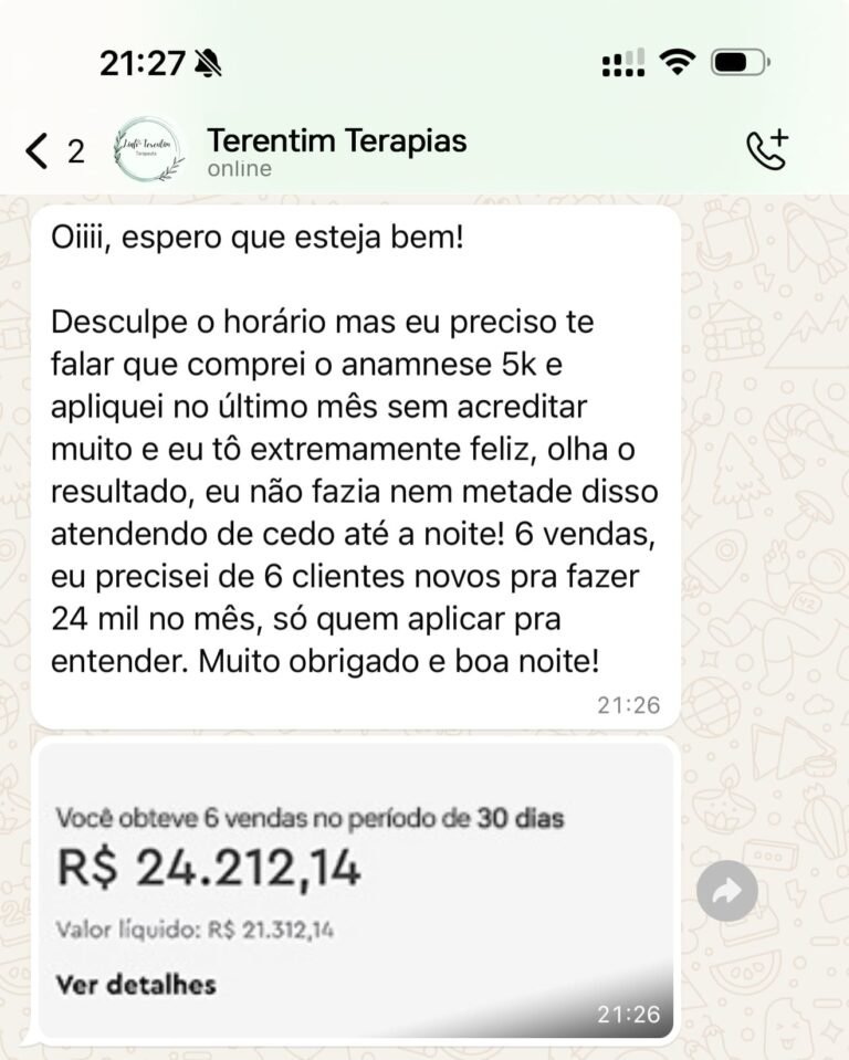 ✅ Aplicar um roteiro pronto de anamnese capaz de fechar pacotes de até R$5.000 já no primeiro atendimento