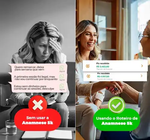 Com o Roteiro de Anamnese 5k, você vai transformar a primeira sessão em uma oportunidade real de: